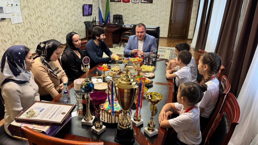 Поводом для встречи стала недавняя поездка коллектива в город Сочи, где артисты ансамбля достойно представили Хасавюртовский район на Всероссийском многожанровом фестивале «Сочинские волны — 2025». Поездка состоялась благодаря поддержке руководства Хасавюртовского района, за что коллектив выразил искреннюю благодарность. Ребята поделились своими впечатлениями о фестивале, рассказали о победах, достижениях и обмене опытом с творческими коллективами из разных регионов страны. Вспомнили и о самом путешествии: прогулках по Сочи, знакомстве с олимпийскими объектами 2014 года и атмосфере большого культурного события. Встреча прошла в тёплой и дружеской обстановке. В её ходе участникам ансамбля посчастливилось познакомиться и пообщаться с героями СВО из добровольческого отряда батальона «Каспий», что произвело на ребят особое впечатление.Также была обсуждена дальнейшая работа коллектива — направления, которые помогут повысить мастерство, укрепить творческую базу и внести вклад в развитие нашего района. Руководство администрации отметило высокий уровень подготовки ансамбля, их талант, дисциплину и стремление к росту, поблагодарив ребят и педагогов за достойное представление родного края на федеральной площадке.