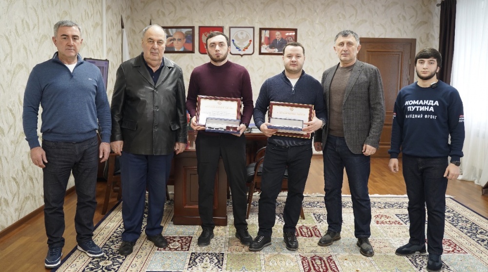 В Администрация МО «Хасавюртовский район» состоялась торжественная церемония награждения участников специальной военной операции — Хаджимурада Багаутдиновича и Залимхана Махмудовича.