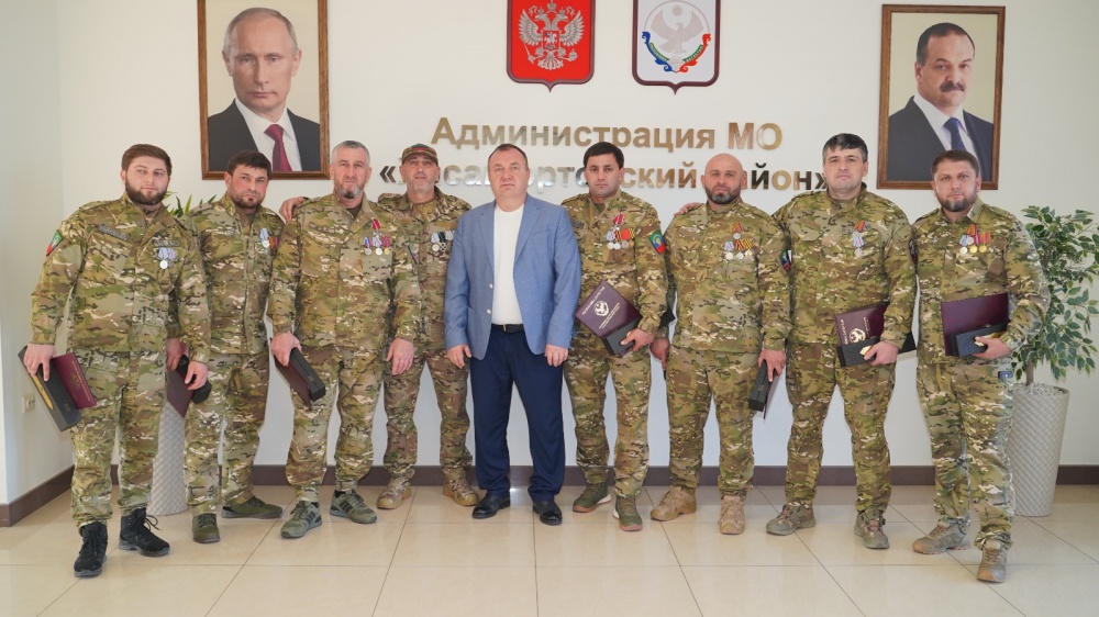 В администрации Хасавюртовского района участникам СВО добровольцам батальона Каспий вручили Благодарность Главы МР