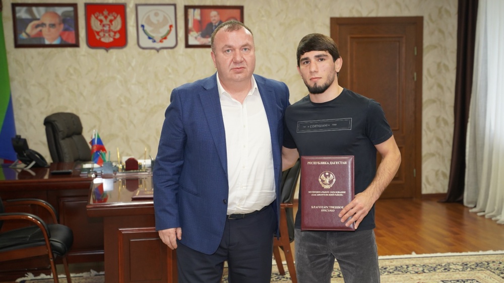Сегодня, первый заместитель главы администрации Багаутдин Мамаев, встретился с Победителем турнира памяти Ш. Умаханова, борцом вольником Хабибом Мехтихановым и победителем Первенства России и Чемпионом мира среди юниоров, Мусой Мехтихановым. На встрече принял участие, заместитель главы администрации Исмаил Шаипов. В ходе встречи Багаутдин Мамаев, вручая Благодарственные письма Главы МР, сердечно поздравил борцов с яркими победами, Хабиба Мехтиханова с заслуженной победой на турнире памяти Шамиля Умаханова и Мусу Мехтиханова, за победы на Первенстве России и ранее главным турниром Чемпионата мира среди юниоров. В свою очередь Хабиб Мехтиханов и Муса Мехтиханов, поблагодарили руководство администрации за внимание и поддержку, подчеркнув, что и в дальнейшем приложат все усилия для достижения дальнейших побед на турнирах.