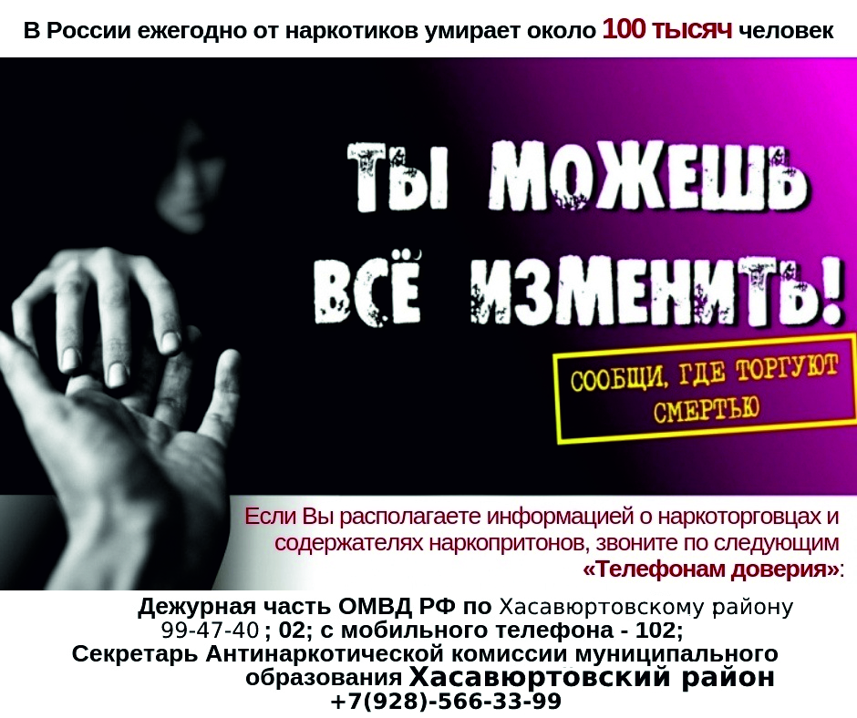 В период с 13 октября по 24 октября 2025 года на территории МО «Хасавюртовский район» проводится второй этап Общероссийской акции "Сообщи, где торгуют смертью".