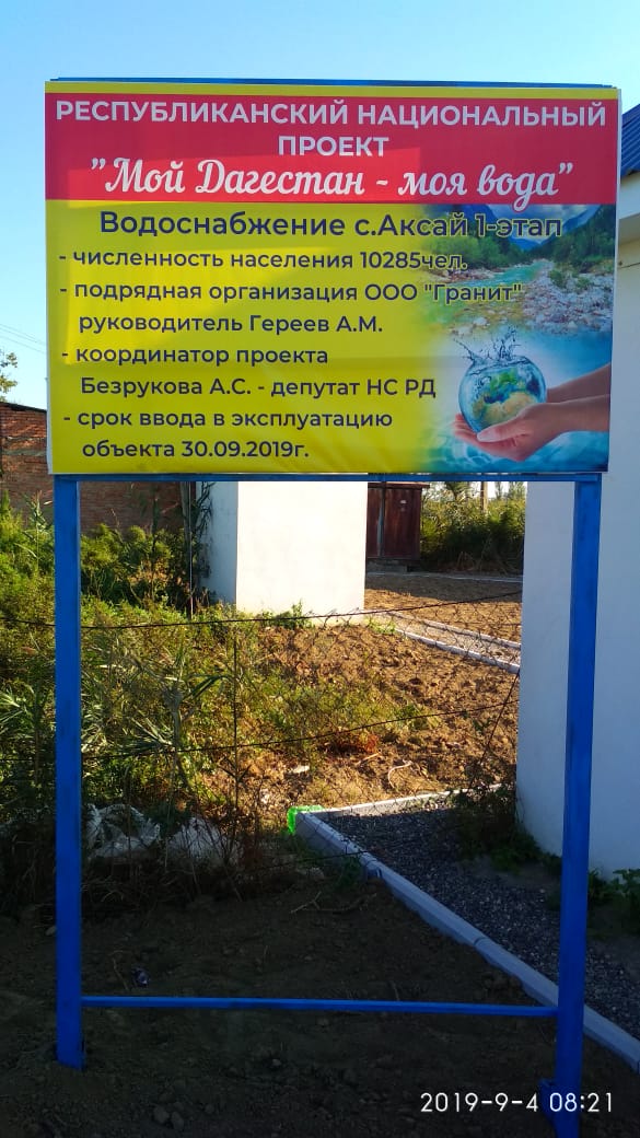16 ноября в селении Аксай состоялось торжественное открытие властями района объекта водоснабжения, в рамках реализации федерального социального проекта « Мой Дагестан – моя вода». По поручению Главы Дагестана, Владимира Васильева, провести торжественный пуск объекта водоснабжения в селении Аксай прибыла общественный координатор проекта « Мой Дагестан – моя вода», депутат НС РД, Анна Безрукова, в сопровождении начальника отдела развития муниципальных образований Минэкономразвия РД Марат Абдулгамидов. В торжественном мероприятии приняли участие глава и актив села, депутатский корпус, общественные деятели, работники образования, культуры, социального центра, духовенство, жители.