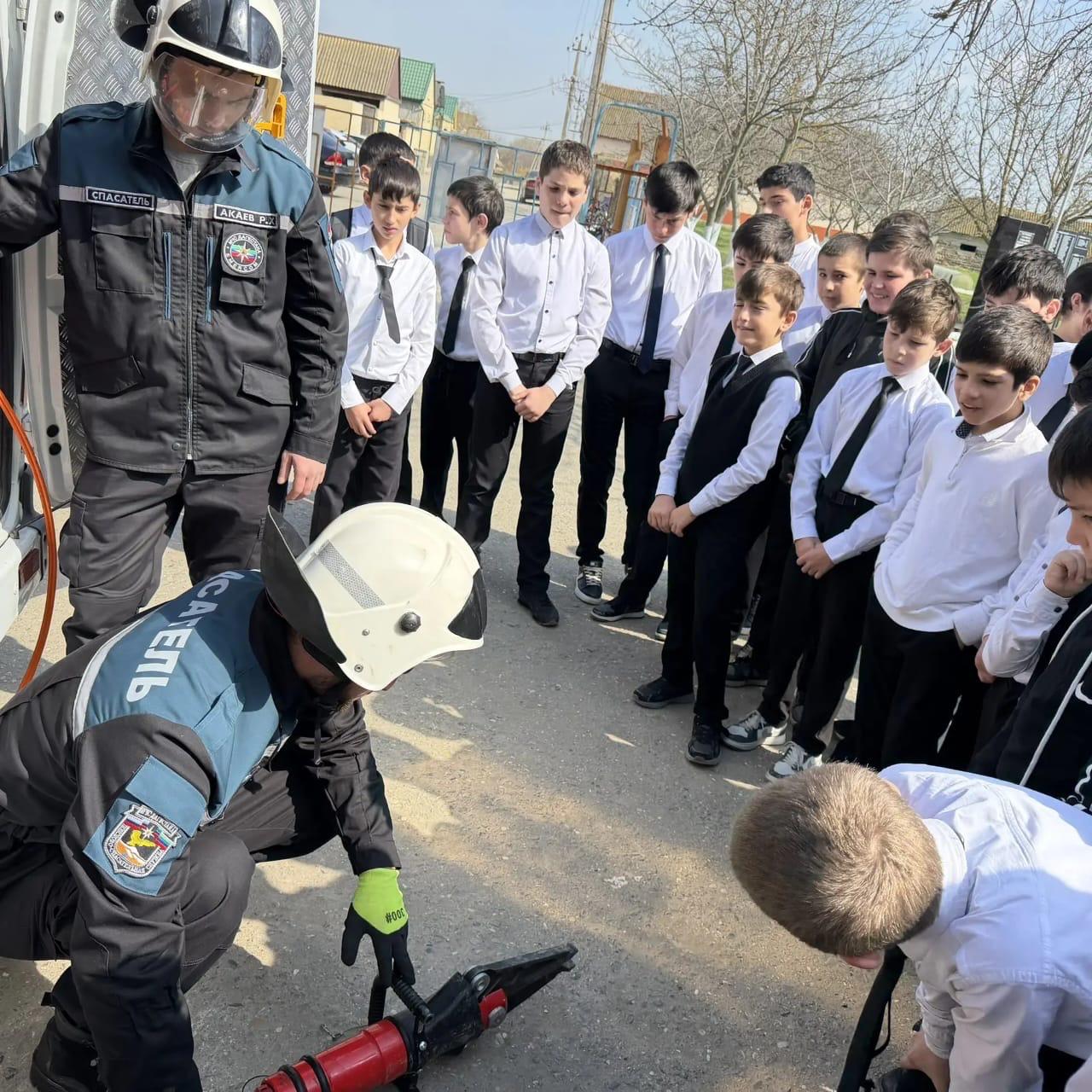 На мероприятие также были приглашены спасатели Хасавюртовского поисково-спасательного подразделения, которые демонстрировали ребятам как проходит спасательные работы. Ребятам все это очень понравилось.