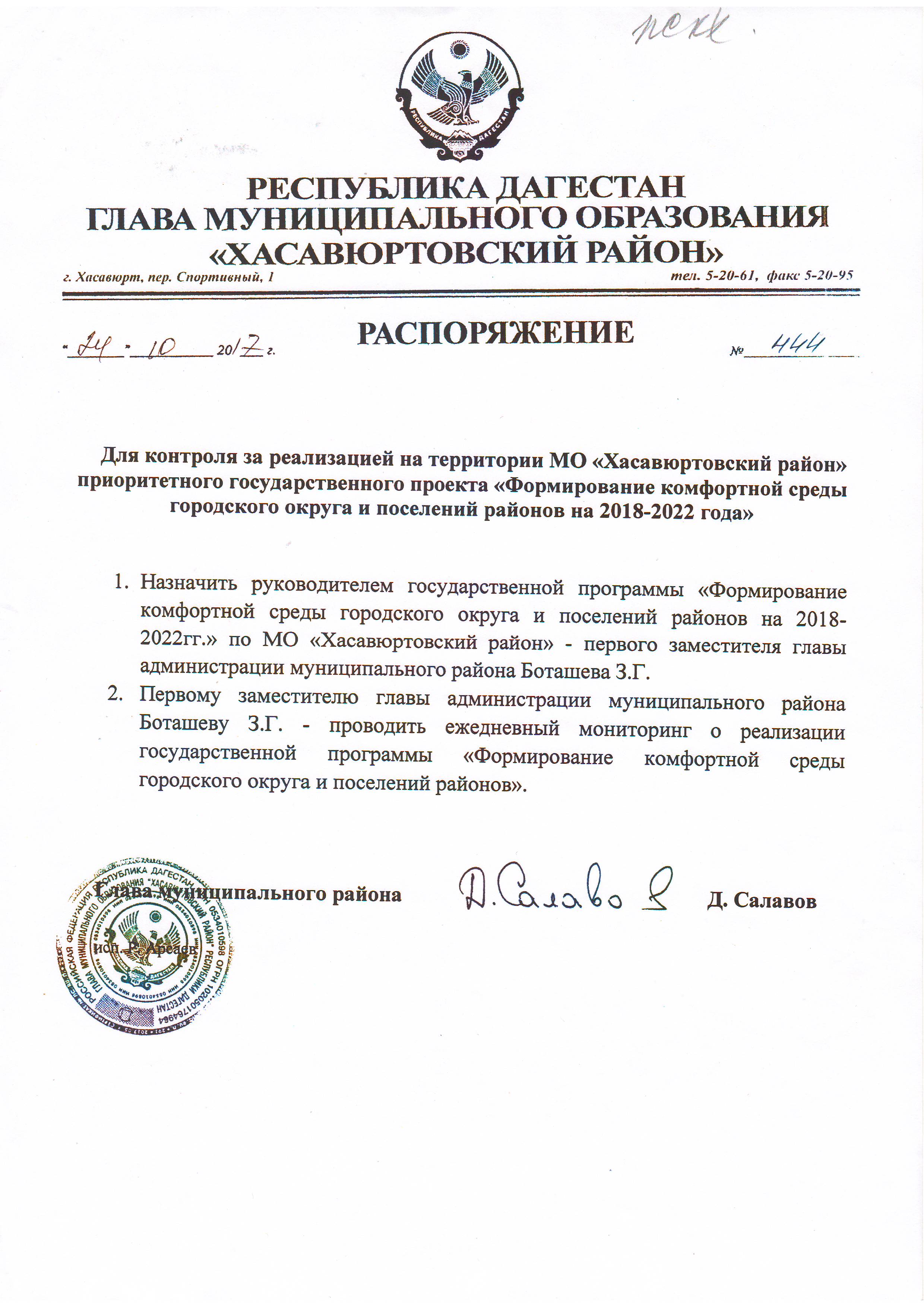 Постановление Об утверждении дорожной карты по реализации муниципальной программы «Формирование современной городской среды» на территории МО «Хасавюртовский район» 2018-2022 гг.