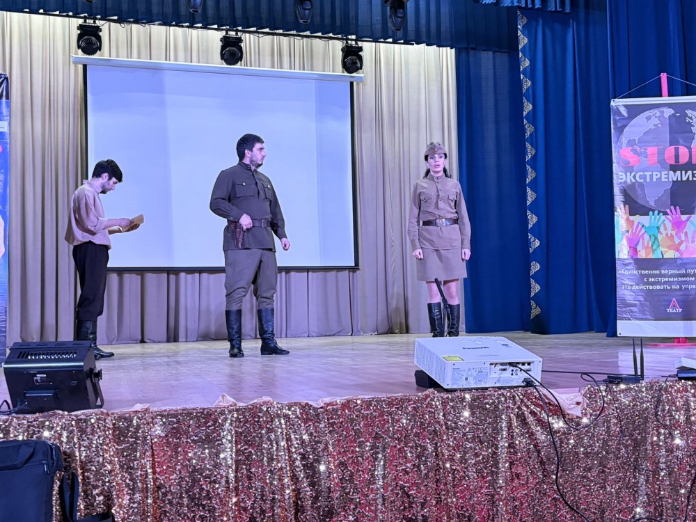 Учащимся были показаны отрывки из спектаклей «Амет-хан Султан» и «Невыплаканные слезы» по фронтовым дневникам прозаика, публициста и поэта Эфенди Капиева, посвященные событиям Великой Отечественной войны,