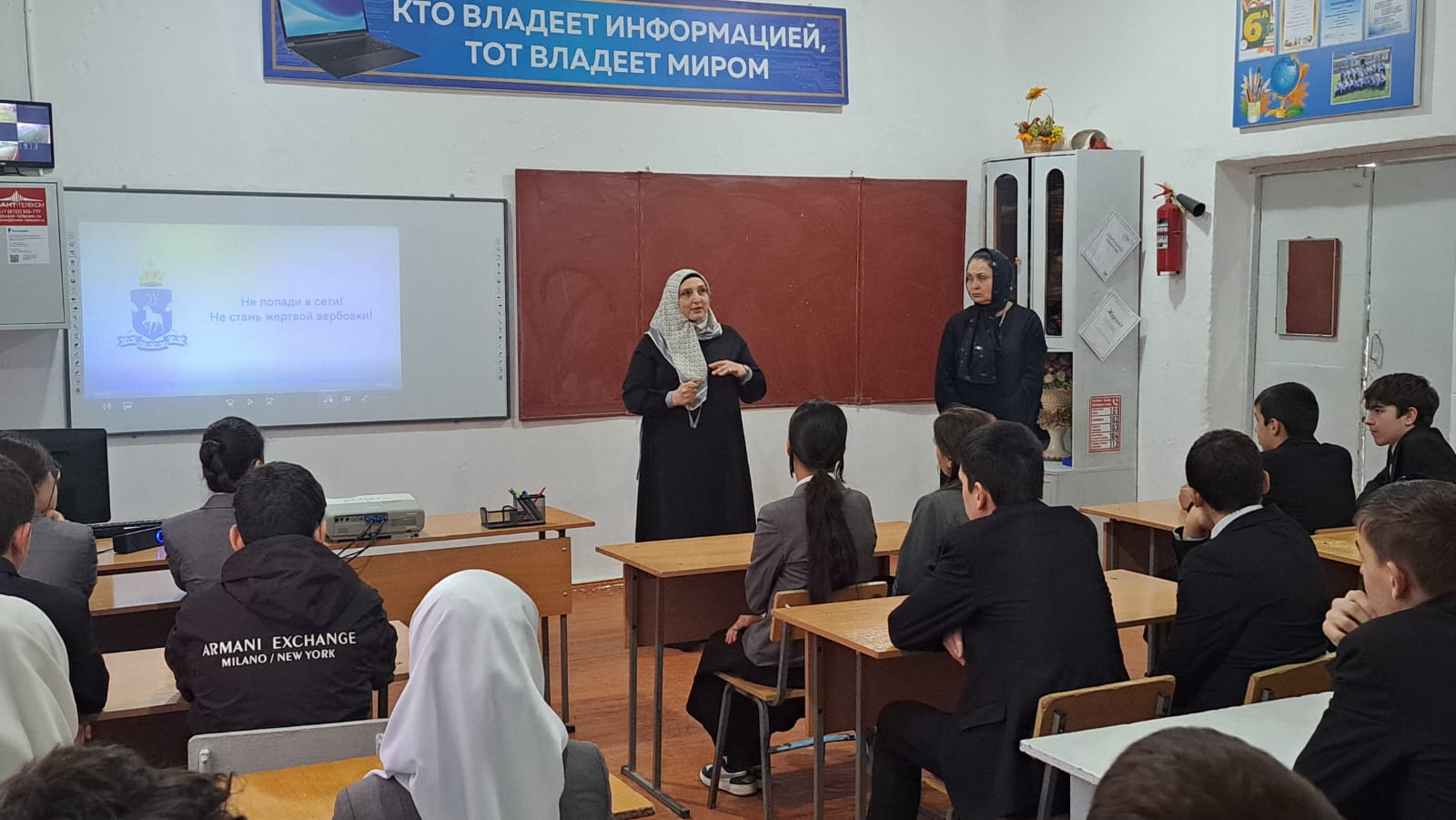 С целью повысить осведомлённость учащихся о террористических угрозах, научить распознавать вербовщиков, дать практические рекомендации по защите себя от манипуляций в реальной жизни и в интернете 24 апреля в МКОУ «Бамматюртовская СОШ» специалисты ОДН и ЗП Администрации МО «Хасавюртовский район» провели со старшеклассниками беседу на тему: «Как защитить себя от вербовки».