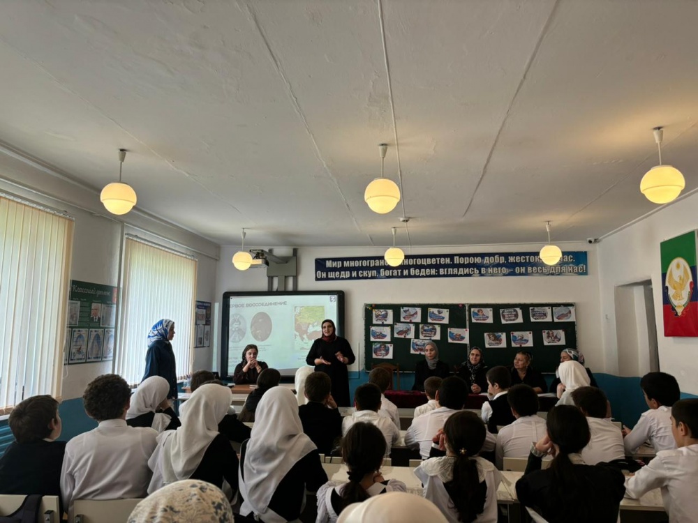 В рамках курса лекций российского общества "Знание" приурочено ко Дню воссоединения ДНР, ЛНР, Запорожской и Херсонской областей с Россией на базе МКОУ "Могилевская СОШ" лектор Анжела Осиева провела со старшеклассниками беседу "Сильны Единством. Как в новые регионы приходит мирная жизнь".