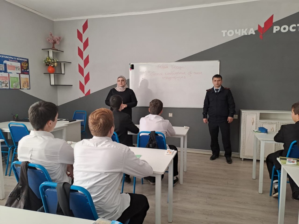 Накануне в МКОУ "Бамматюртовская СОШ" начальник ОДН и ЗП Администрации МО "Хасавюртовский район" Руслан Атаев, главный специалист Анжела Осиева и инспектор ОПДН ОМВД России по Хасавюртовскому району Магомед Абуталибов провели беседу со старшеклассниками на тему: "Заведомо ложное сообщение об акте терроризма".