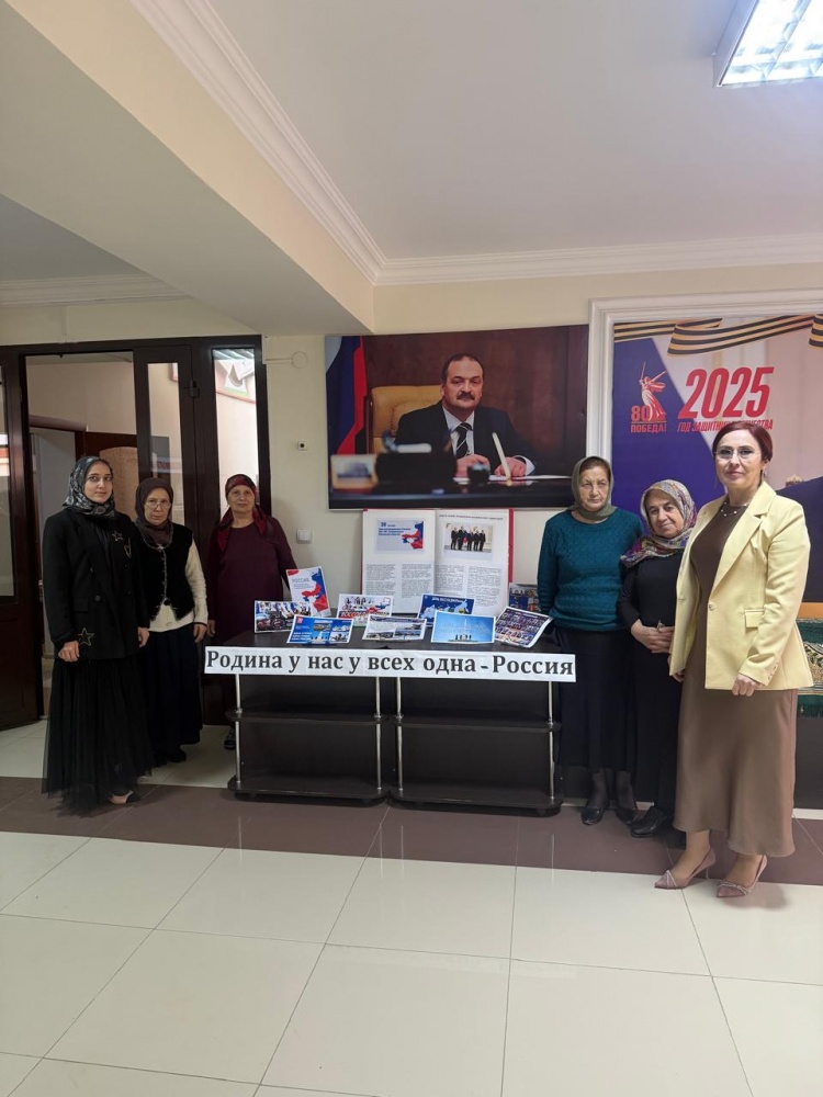 Дата 30 сентября вошла в новейшую историю как День воссоединения Донецкой Народной Республики, Луганской Народной Республики, Запорожской и Херсонской областей с Российской Федерацией. В методическом отделе ЦБС Хасавюртовского района прошел круглый стол: «Родина у нас у всех одна - Россия»В фойе ЦТКНР оформлена фотовыставка: «Родина у нас у всех одна - Россия». В своем выступлении директор ЦБС Абасова Зульфия подчеркнула, что именно в этот день 2022 года были подписаны международные договоры о вхождении этих регионов в состав Российской Федерации на правах её субъектов, далее она отметила, что в преддверии этой исторической даты библиотеки-филиалы района для своих читателей проведут информационные часы «Россия и Донбасс – едины».., где напомнят присутствующим, какой трудный путь прошли в течение восьми лет жители регионов, отстаивая свое право говорить на русском языке, добиваясь независимости и признания.