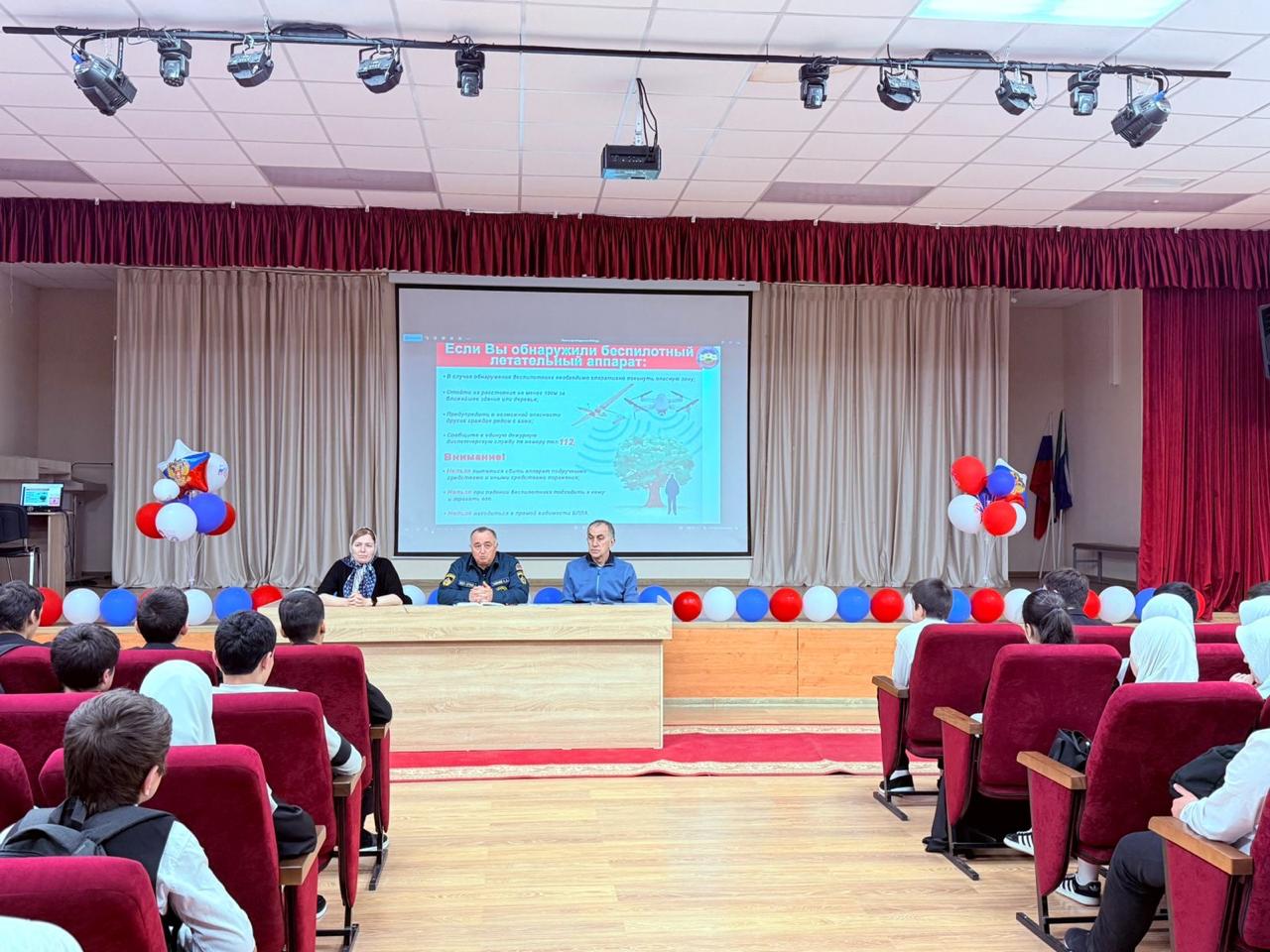 Начальник отдела ГО МКУ «Управление по делам ГО и ЧС Хасавюртовского района» Абдулнасир Тавбиев провел инструктивную беседу с руководством и педагогическим коллективом школ по правилам поведения при ЧС различного характера (пожар, землетрясение) и при угрозе или возникновении террористических актов, а также провел занятия на тему: «Беспилотные летательные аппараты».
