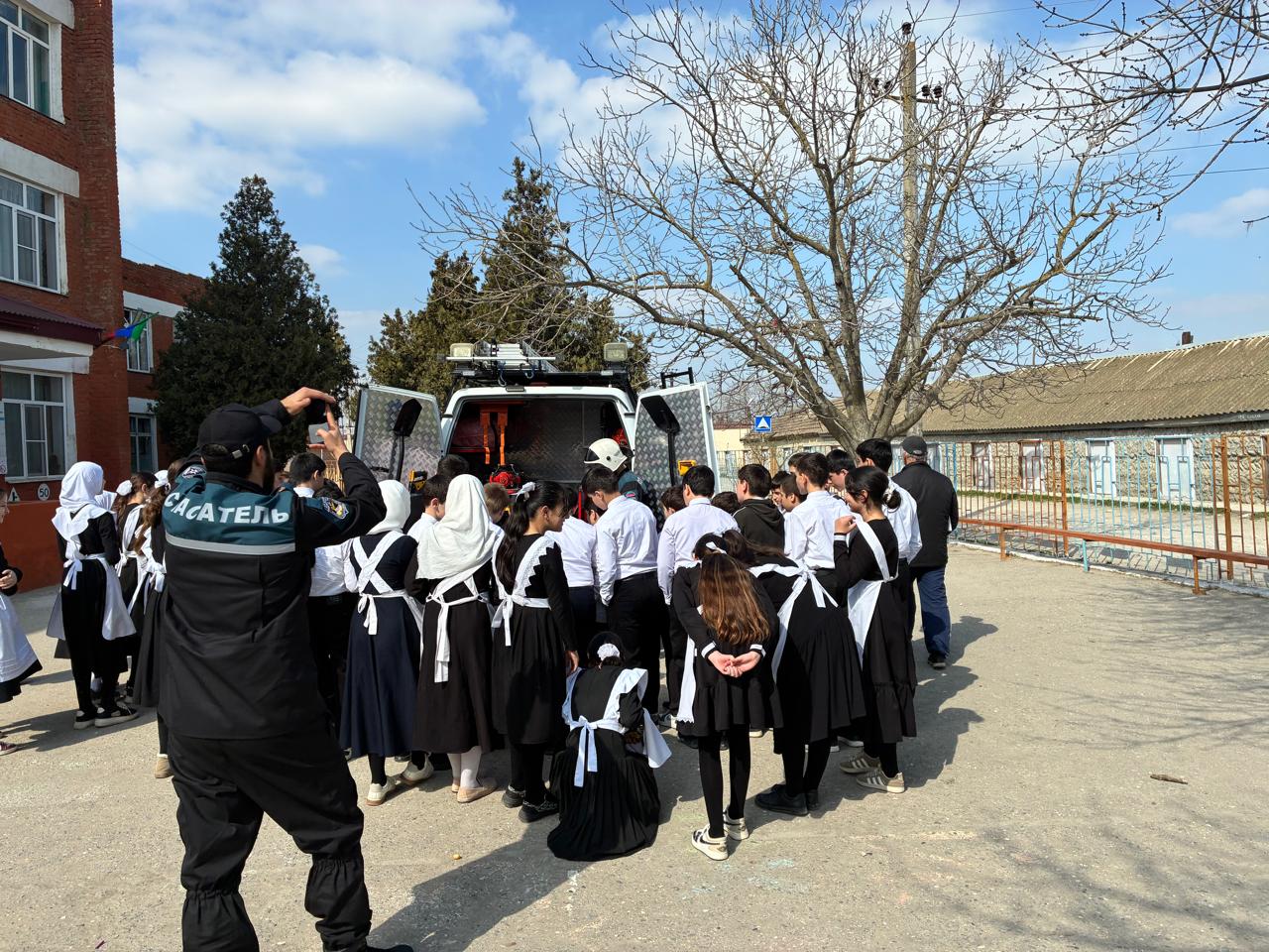 На мероприятие также были приглашены спасатели Хасавюртовского поисково-спасательного подразделения, которые демонстрировали ребятам как проходит спасательные работы. Ребятам все это очень понравилось.