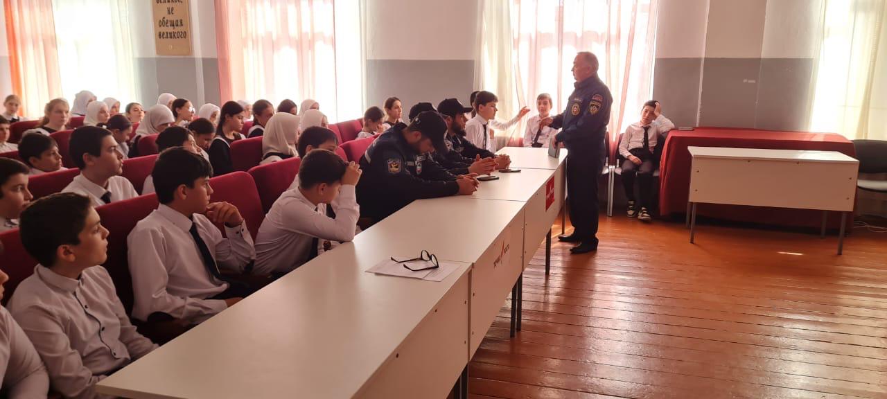 Начальник отдела ГО МКУ «Управление по делам ГО и ЧС Хасавюртовского района» Абдулнасир Тавбиев провел инструктивную беседу с руководством и педагогическим коллективом по правилам поведения при ЧС различного характера (пожар, землетрясение) и при угрозе или возникновении террористических актов, а также принял участие при проведении практической (учебной) эвакуации учащихся из здания школы. Он ознакомил учащихся с признаками обнаружения БПЛА в воздухе, о действиях при обнаружении БПЛА на улице, в автомобиле или общественном транспорте, в здании, было разъяснено, что в случаях обнаружении БПЛА необходимо звонить по номеру «112», назвав при этом время, место, примерный курс полета, его визуальные особенности, а также свои данные. Также были затронуты вопросы пожарной безопасности и наступление купального сезона.