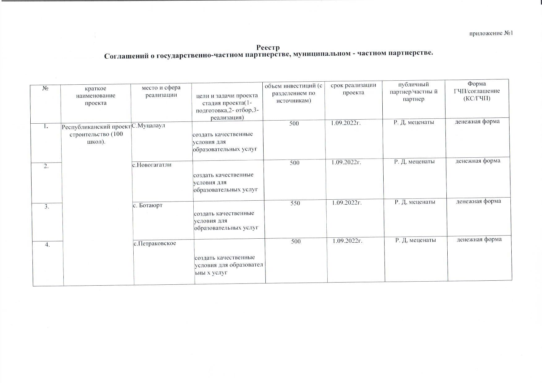 Реестр Соглашений о государственно — частном партнерстве, муниципальном — частном партнерстве.